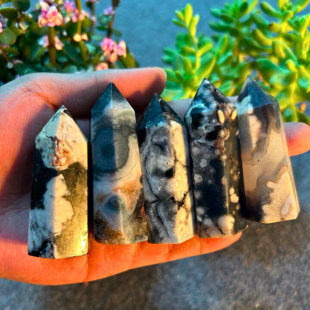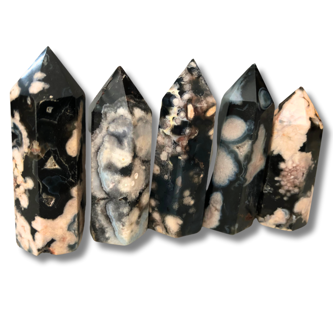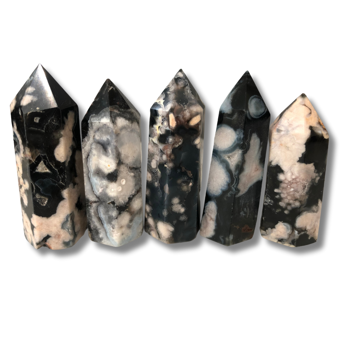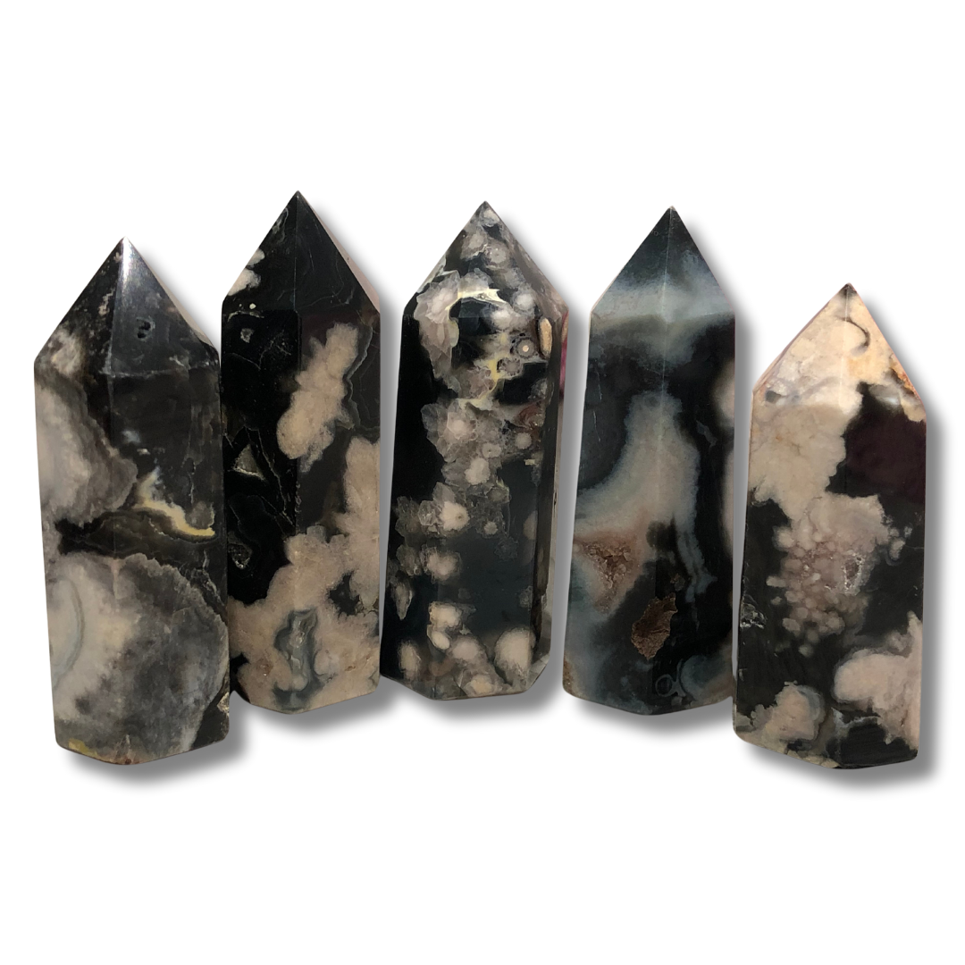 Black Flower Agate Tower - Set of 5
