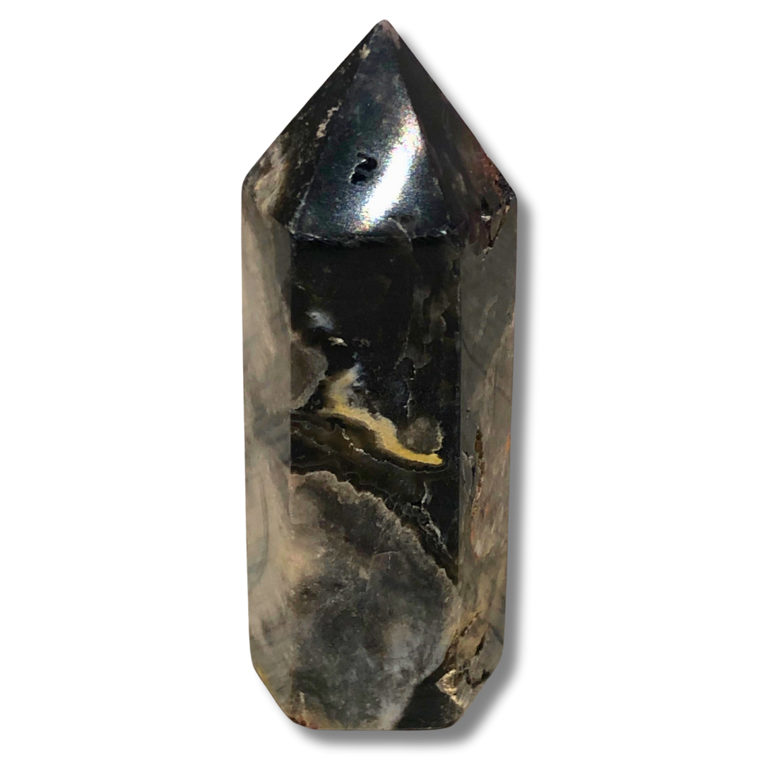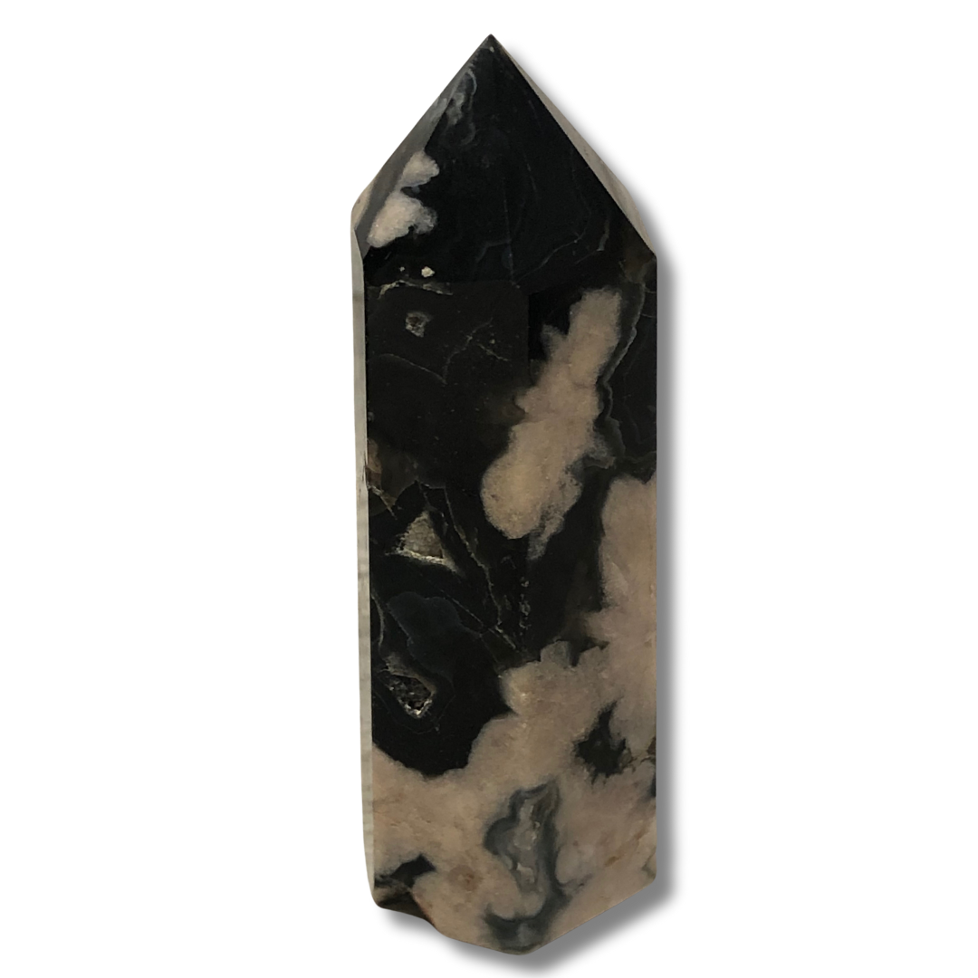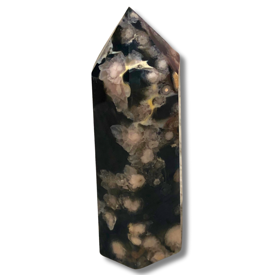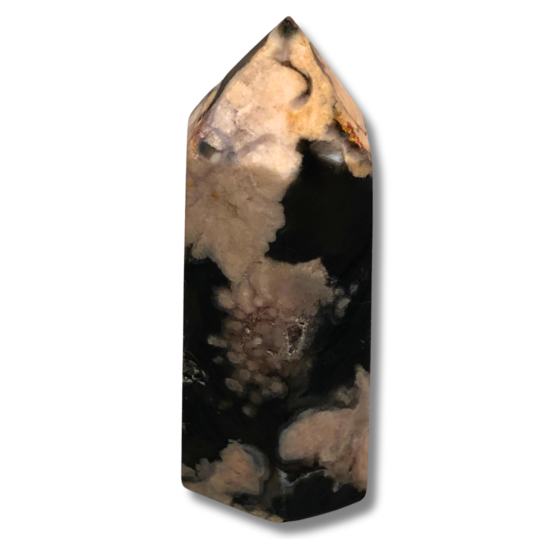 A Black Flower Agate Tower is a striking and versatile crystal that supports emotional stability, personal growth, and protective grounding, making it a valuable addition to your crystal collection or spiritual practice.
