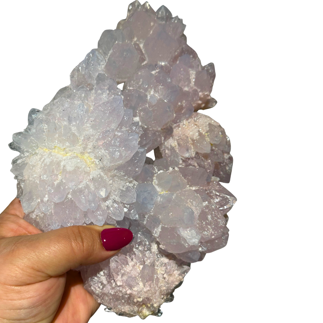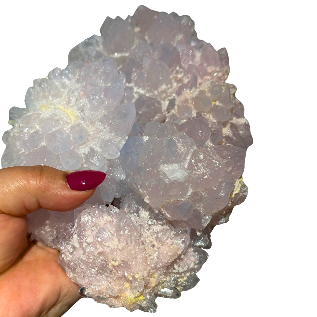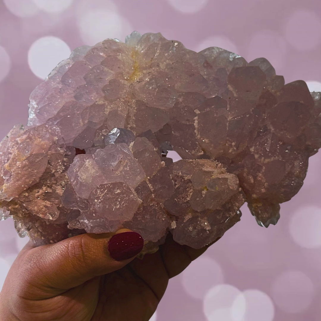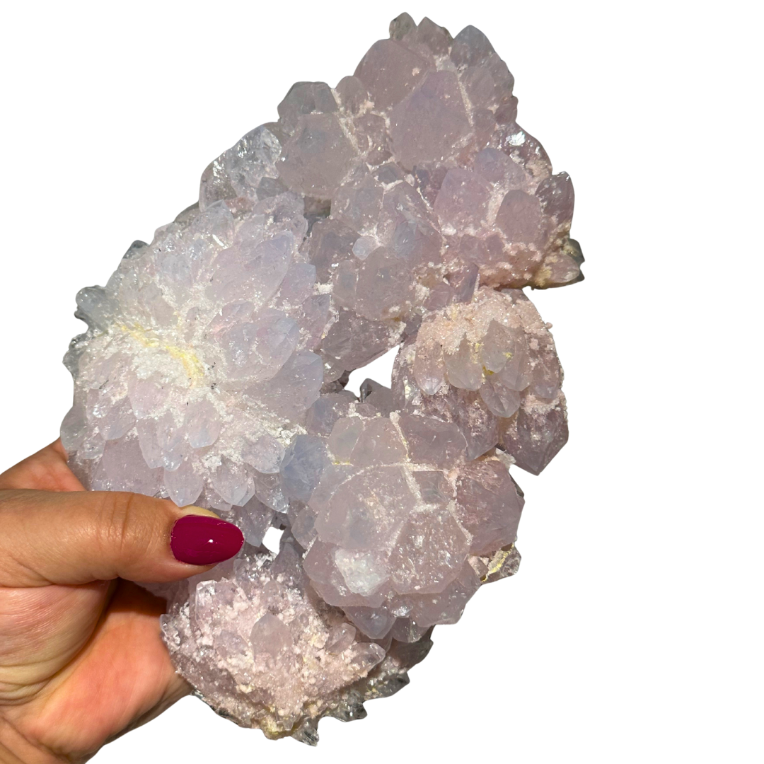 The Natural Pineapple Pink Quartz Crystal Cluster is a powerful yet gentle tool for healing, growth, and creating an atmosphere of love and peace. Its rare formation from Madagascar adds to its uniqueness and energetic potential, making it a beautiful addition to any space or practice.